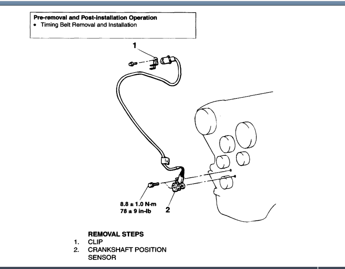 In the diagrams down below I have included the location and the instructions for the removal and installation of your vehicle's CKP sensor. Please go through these guides and get back to us with how everything turns out.