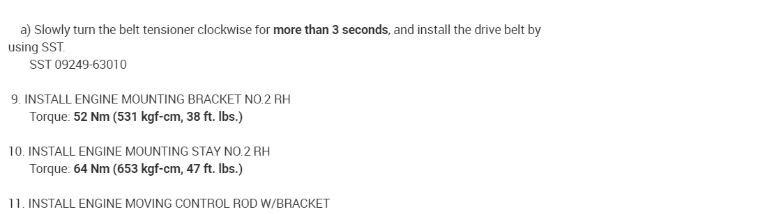 9. INSTALL ENGINE MOUNTING BRACKET NO.2 RH Torque: 52 Nm (531 kgf-cm, 38 ft. lbs.)