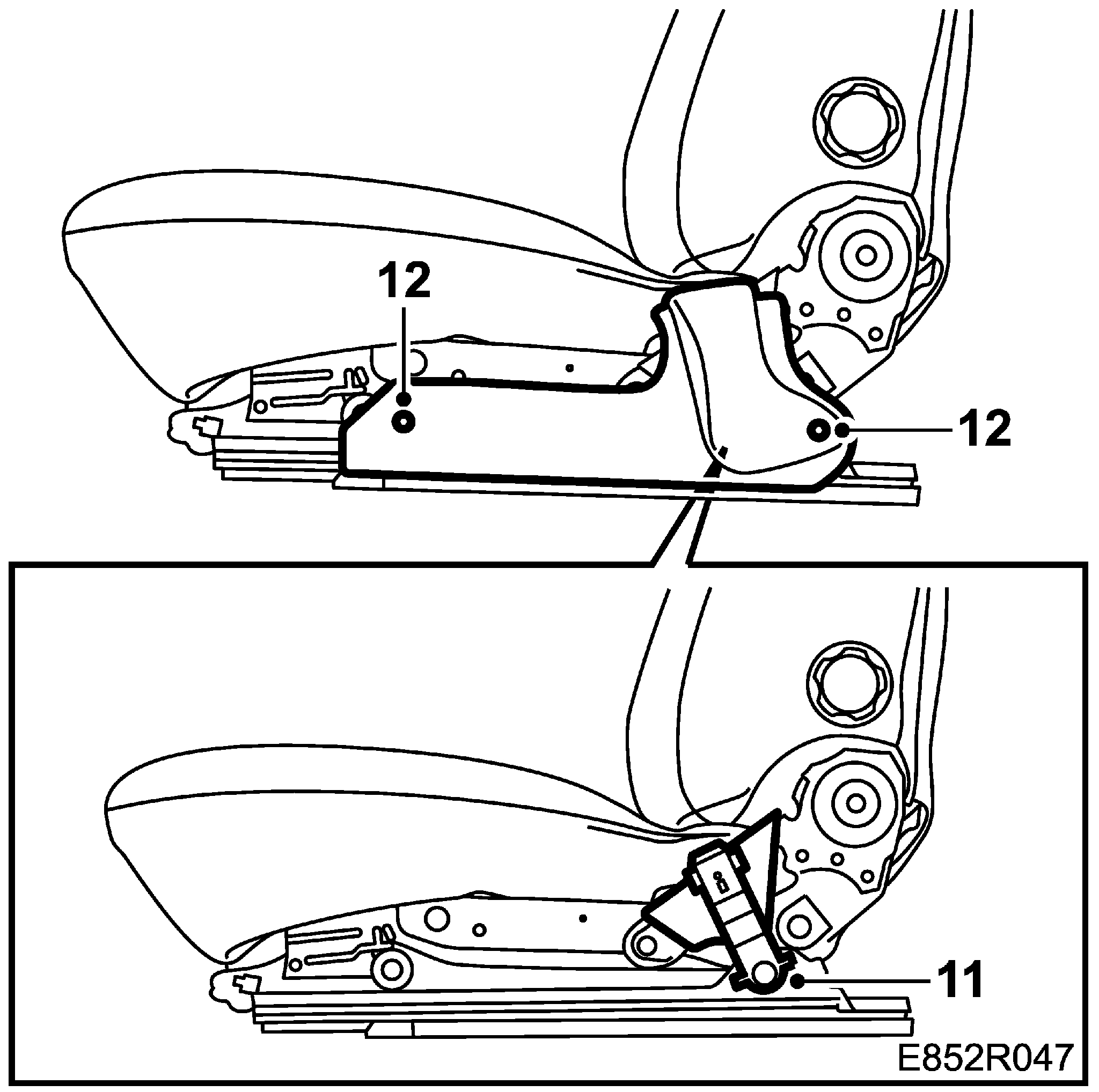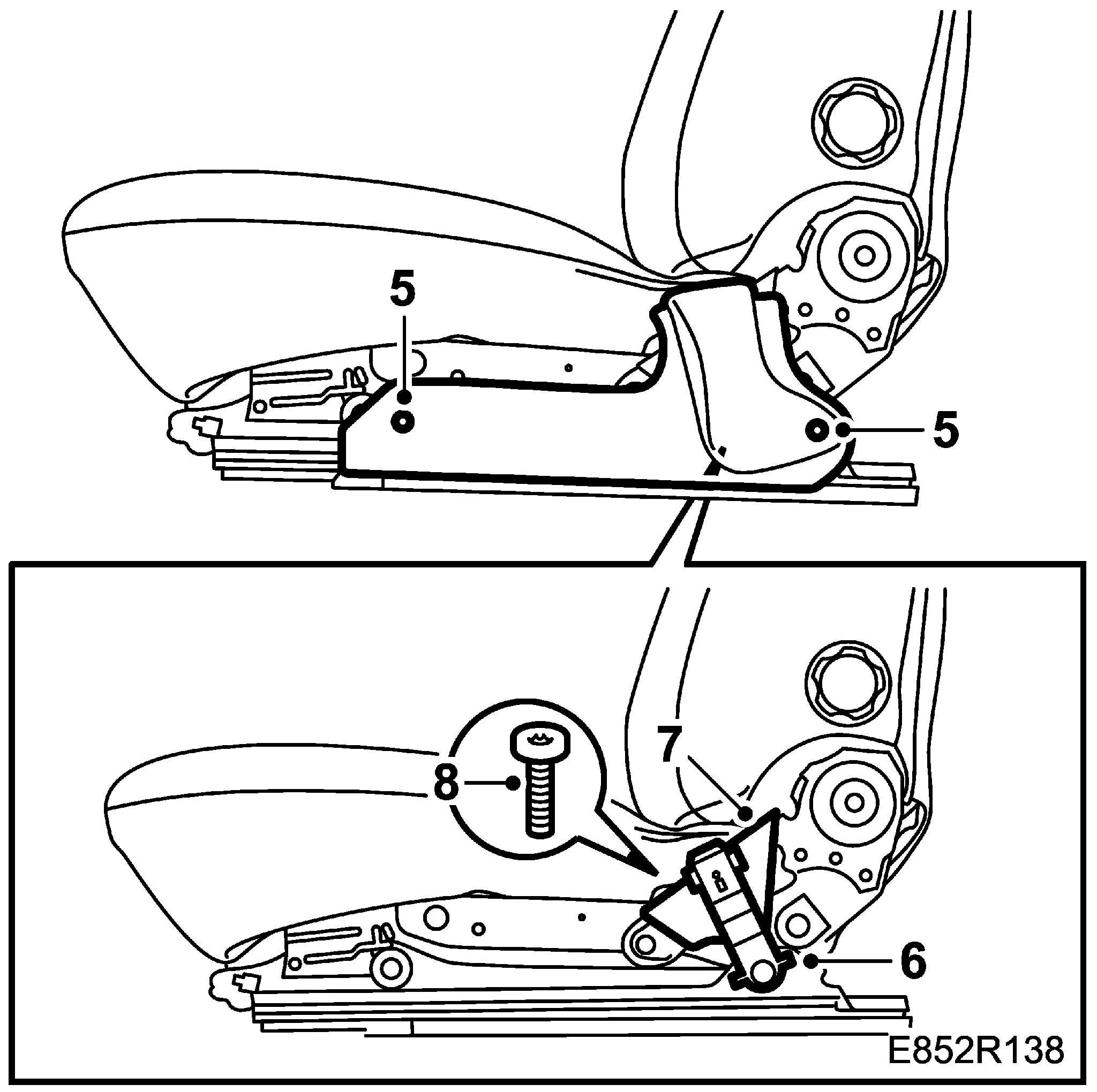 1. Remove a seat by unscrewing the four T40 torx bolts that hold the seat to the chassis, and the seat belt bolt (17mm) on the side.