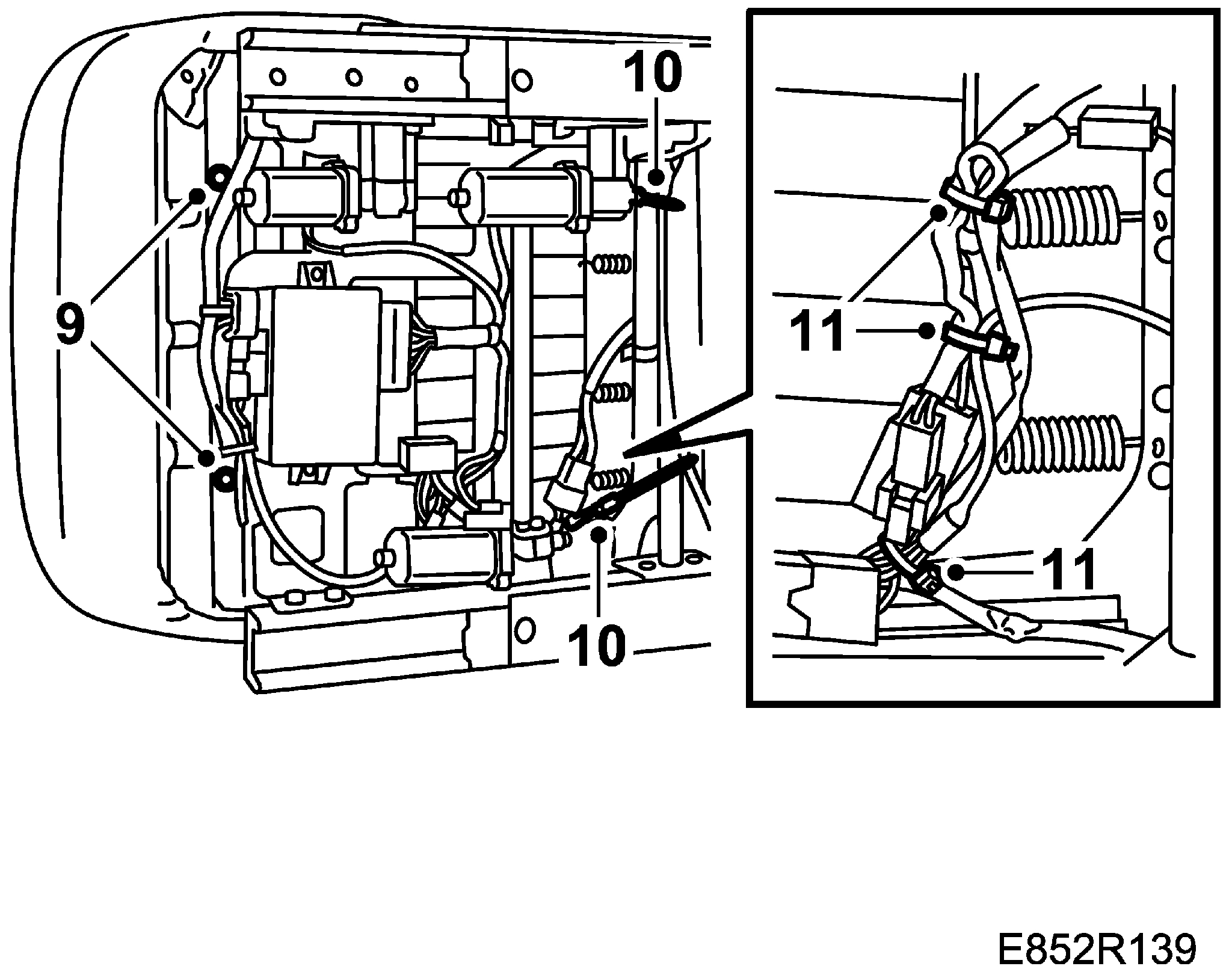 31. Re-attach the two clips on the black cable to the seat spring frame.