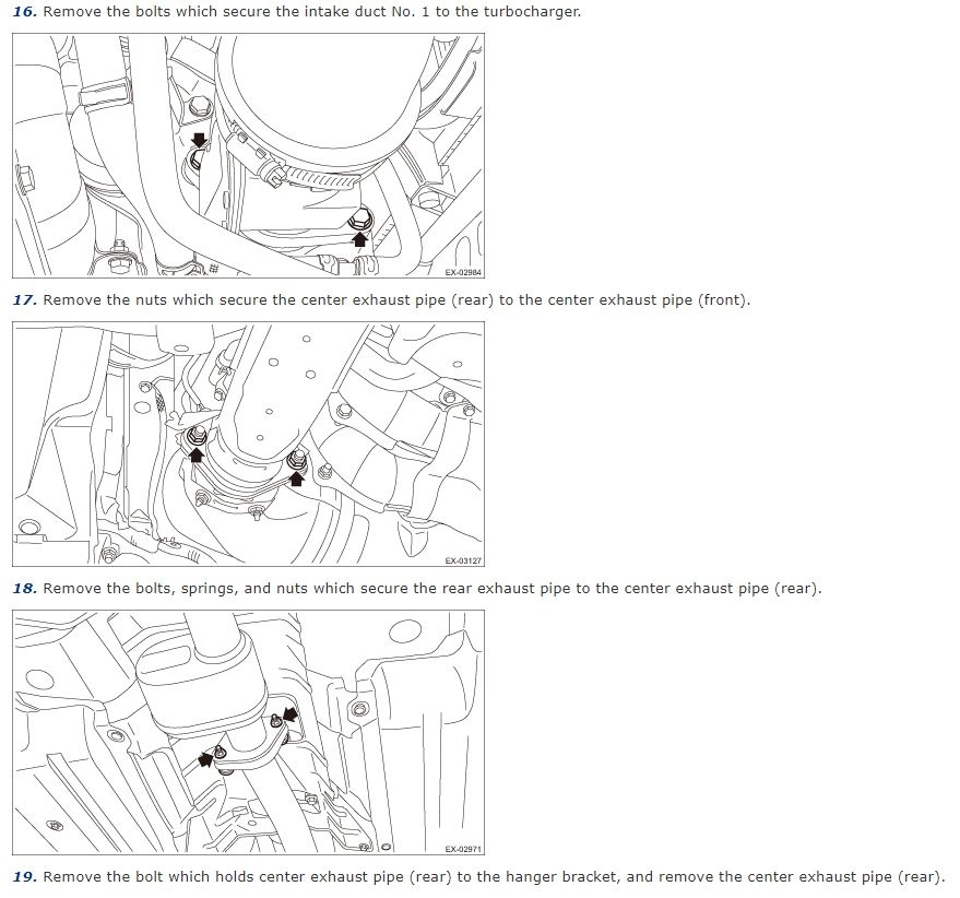 I am trying to separate the turbo along with the twi exhaust pipes that attach to the side. i removed all the hoses, bolts on the exhaust, 3 bolts on front of the engine, and any oil or coolant hoses. How is this supposed to drop? Is the turbo bolted to the engine from the bottom as well?