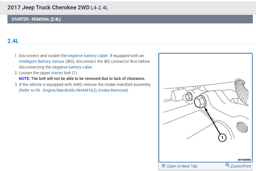 The starter motor on this is a little different because you will be able to loosen the upper bolt, but due to a clearance issue, you can't remove it. However, it will be disconnected, and the starter will come off.