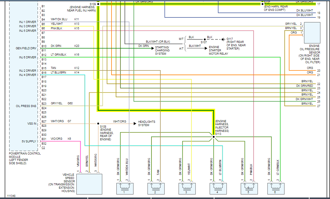 fuses 19 and 24 test okay. I can see the yellow "check engine "yellow light illuminate after 15 seconds , a few mn ago i had a new problem it wont start at all , the motor won't turn when i turn the key to start .. no motor turn ..