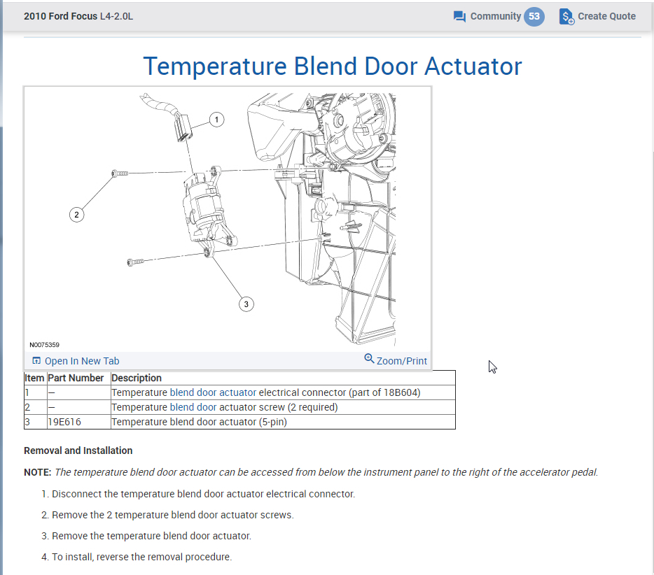 Thank you. I removed the actuator and it seems to be working fine. Do you have a diagram that shows access to the actual blend door? Probably jammed by something.