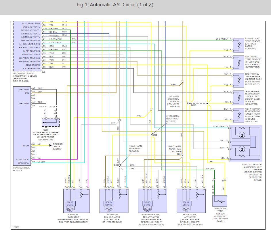 My ac works great on both driver and passanger side. when i change the temp to 90 and hit the deforst I get cold air driver side and hot air passanger side. I have replaced the driver side blend door acuator 2 times and still I cant get the system to work correctly. When i removed the firs blend door acuator the actuator didnt move at all. I took it back and got another one and all it did eas moved about 1/16 of an inch each way. i recieved warm then cold air back and forth. If I remove the blend door acutator on the driver side i can turn it manually and get hot air, or cold air depending on what position i put the actuator door in. I do have digital readings on the HVAC unit and the car has dual climate control. I have went to the junk yard and replaced the AC head with several different haeds and still no change. I also have no lights on the buttons on the HVAC control system.