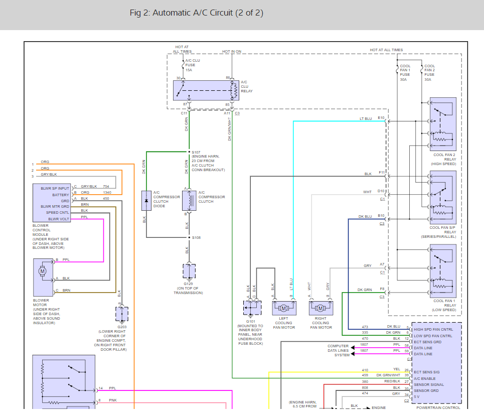 There are five fuses that run the system lets check them all for power and if okay you must have a shorted wiring causing the issue here are two guides to help us get started with the HVAC wiring and fuse diagrams below. The diagram show which fuses to test.