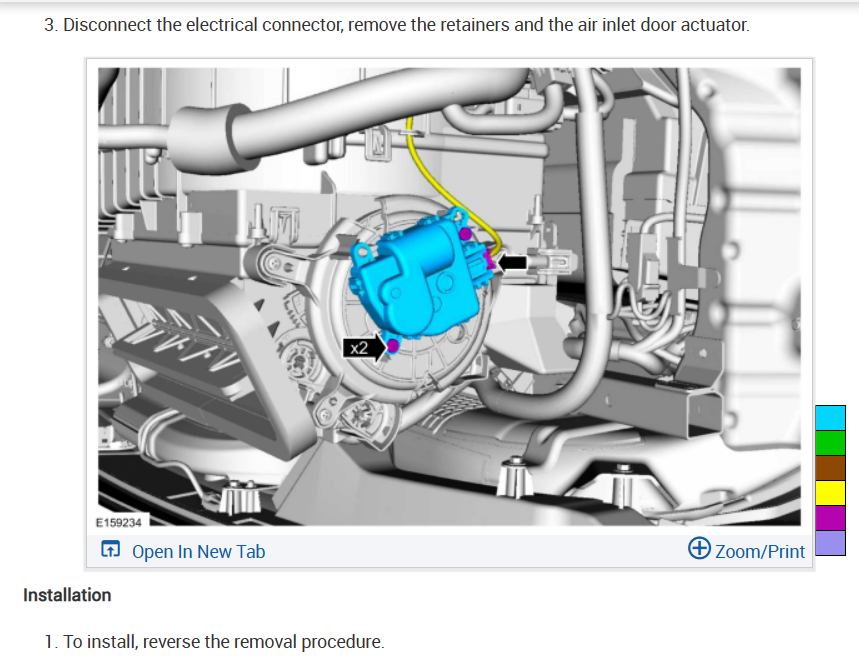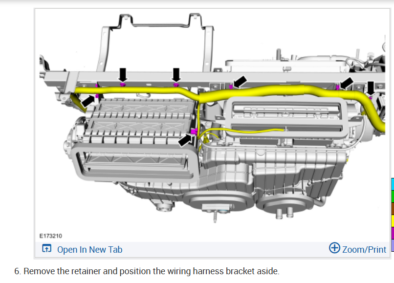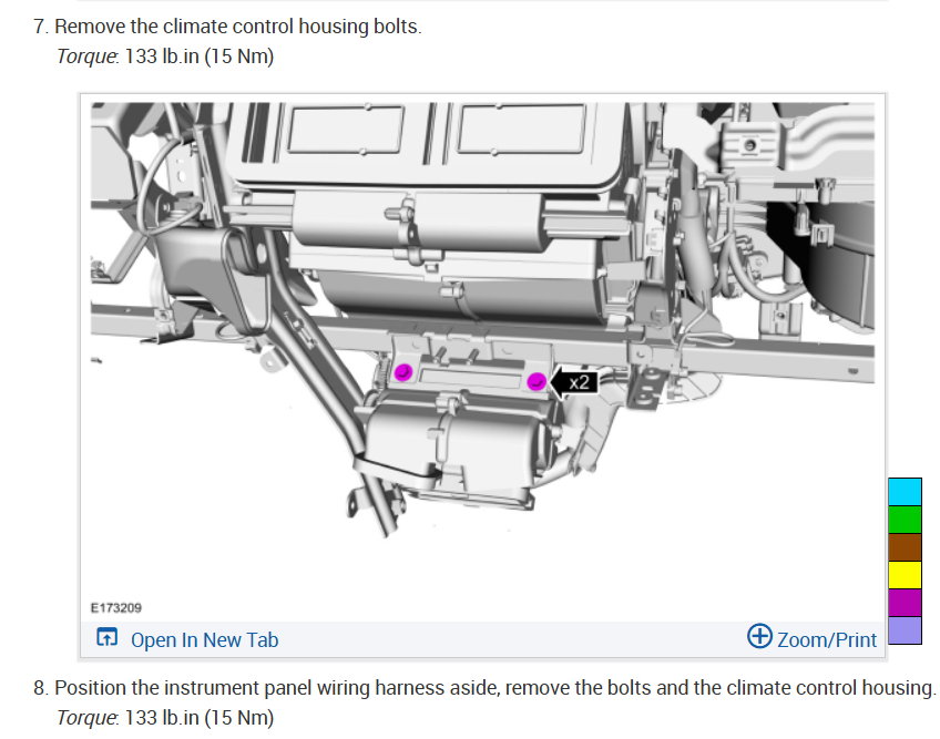 This is far to the passenger side behind the glove box. With the glove box out, I can access the front screw but can't find a way to remove the rear screw to remove the actuator.