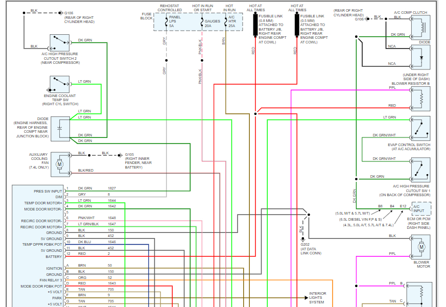 As far as the power supply is concerned, I attached the wiring schematics below for the HVAC circuit. It identifies fuses as well as all electrical components involved.