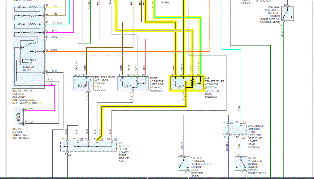 The front HVAC in my vehicle only blows cold air. I've replaced the actuator under the dash on the passenger side of the center console and it doesn't seem to move the blend door at all when I change the temperature on the control panel. I can move the blend door by hand when the actuator is not in place and have verified I'm getting plenty of hot air.
