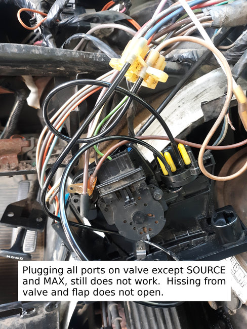 But I am having no luck once installed. If I jump the source to the blue vacuum line, my main flap opens, which would mean MAX, but when installed, nothing works. This is a brand new vacuum valve, and I believe someone has moved the vacuum lines around.