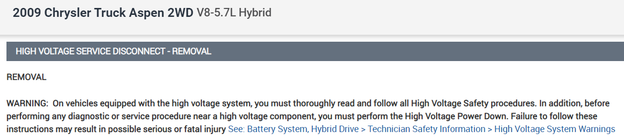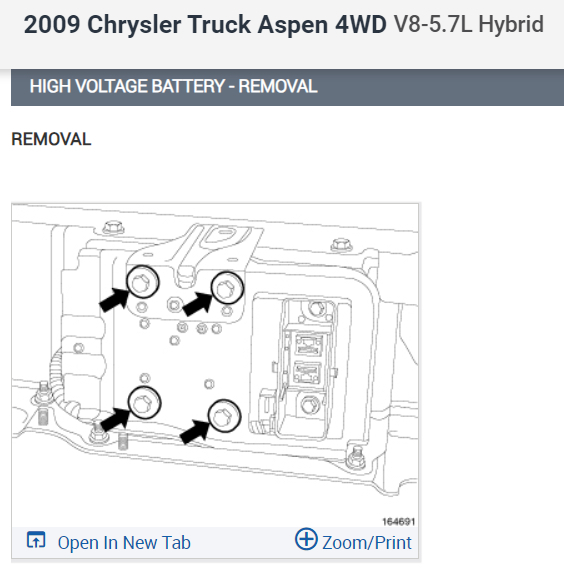 I was able to get the Aspen running and drove it back to Northern Nevada from Gilbert, AZ in one day. However, when I parked it for a day or two it wouldn't start. I kept getting the "System Off" message under the Hybrid display on my radio panel. I found one of the cells/modules in the hybrid battery was only at 5.5 volts while the other 39 were at 7.83 volts. The company that sold/installed the hybrid battery sent me a replacement cell and now my battery reads 314 volts. However, the car still won't start, and the same message appears on the radio panel. Maybe I need to do the "power up" procedure? I think that must reset the HCP. The only code I got is U1123 which I had before I left Gilbert, AZ.