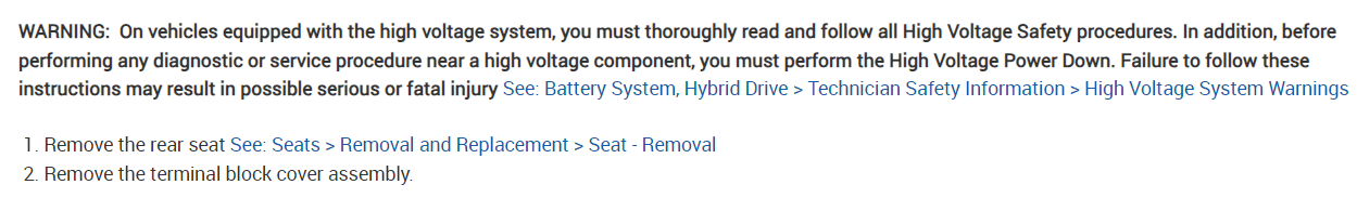 The company guarantees the battery is fully charged but I’m going to check the voltage across the two posts to confirm. If it doesn’t show any voltage what is the chance something inside the battery is stopping the flow of current? For example, the BPCM or connectors as described in the manual. I don’t know if the HV battery has to be connected to the car to be able to read voltage correctly or if it’s isolated (completely disconnected) if voltage can be read. With the original HV battery I was able to read 114V across the two posts at the HV battery. But I think the “smart” cable was connected and the key was off.