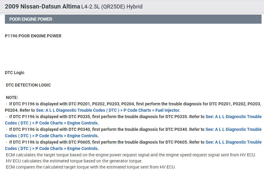 I've begun having issues with my vehicle in the last two weeks. It started with a check engine light (code P1196) and has progressed to randomly showing the Hybrid System Warning light. When the light comes on (during start up) the car runs extremely rough and then shuts off. If you re-start the car it will still show the light but it can be driven in B. However, the battery charging indicator is pointing straight down as if the battery isn't charging at all, but the kw needle shows ready and running. Let it sit for 10-minutes and it restarts with no issues - the HSW light is gone and the car drives perfectly fine. It's done this randomly three or four times and then goes away. Possible battery issue maybe? I've never owned a hybrid before and have no idea where to look.
