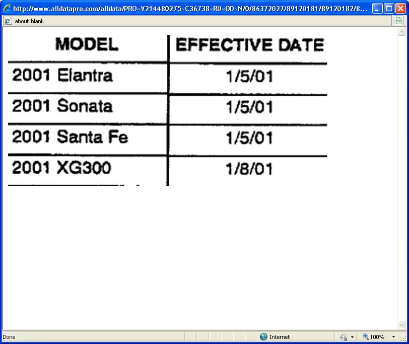 Hyundai has deleted the external oil filter (P/N 46322-39000) on all Elantra, Sonata, Santa Fe and XG300 transaxies effective with the production dates listed below. These transaxies are equipped with an internal oil filter that needs to be changed only during transaxle overhaul.