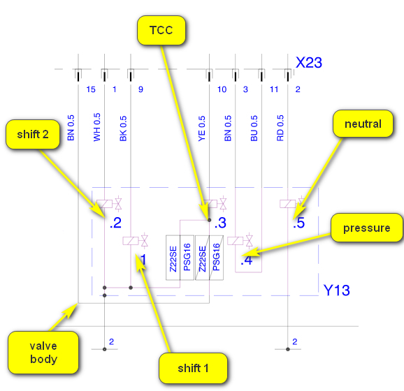 The valve body has no separate voltage supply apart from the control voltage from the TCM to activate individual solenoids. The TCM uses 7 wires via connector X23 to control the valve body solenoids. I have shared with you supply fuse for TCM in my previous reply.