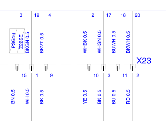 Connector X23 is a 16 pin grey/brown connector on the transmission housing, image 4