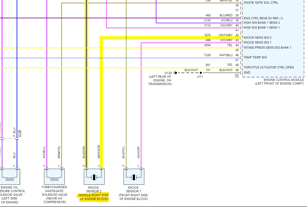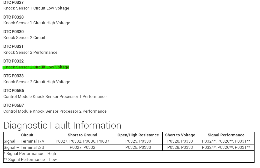 Hello, it's the number 2 knock sensor. You can go by wire coloring if you're unsure of which sensor. Verify that the connector is not damaged and or the pins are loose. You may want to check the circuit for a short to Ground. The code setting criteria is short to ground for more than 5 seconds. Check the two wires for the sensor at any contact point for the wiring harness. Contact points are where most short to grounds happen and you might find other wires affected as well or catch a problem before it happens. You don't want any other sensors shorting out. It can cause a no start condition.