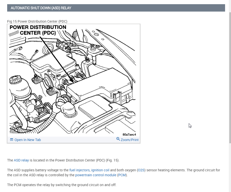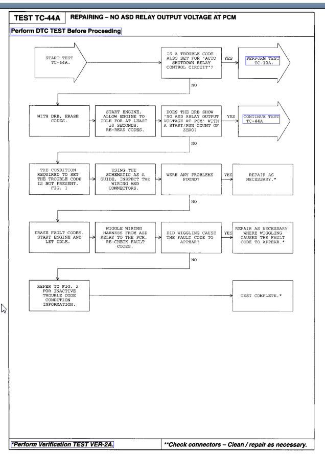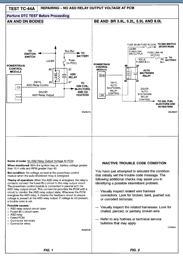 Unfortunately, I can't tell you which part to replace because we will need to do the testing that I attached previously to determine what it is. This could be a number of things including a wiring issue in the ASD circuit, the B+ wiring for the ASD, the relay itself, PCM, or a connector issue with any of these items.
