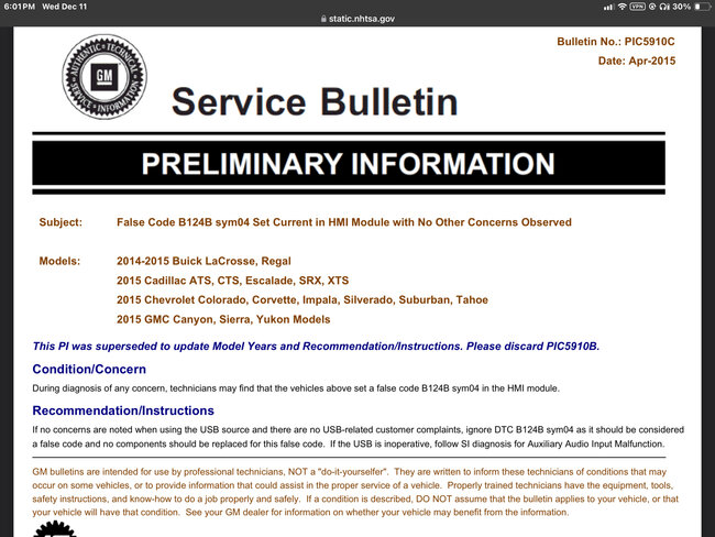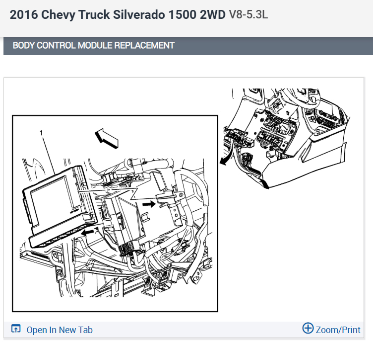 NO :Pic5910c I’ll send pic , another question ,how hard is it to get to the ground location for BCM that is supposed to be right below the driver side pillar , do you have to pull the instrument cluster or is there another way to get around all that ?I just want to get to the bottom of this as quick as possible because ,,if it needs a body control module, I may just sell the truck the way it is after I find out how much it’s going to cost to have one programmed and the cost of one. Also, the USB connector in the center console is not connected so that must be my open circuit and I want to know if there is a way to bypass that or do I have to find a replacement And by looking at the center console there does not look like there is any way to open it up to get to USB plug. I’ll start going over all this info you sent me and get back to you, let me see if I can send you that bulletin I found I’m going to go fire up my printer. thanks