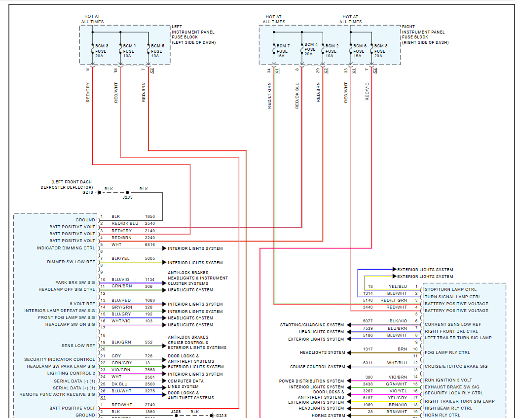 Wiring diagrams are like road maps, just follow the wires and they say what they do. If the wiring has not been tampered with, I would try the reprogrammed BCM.