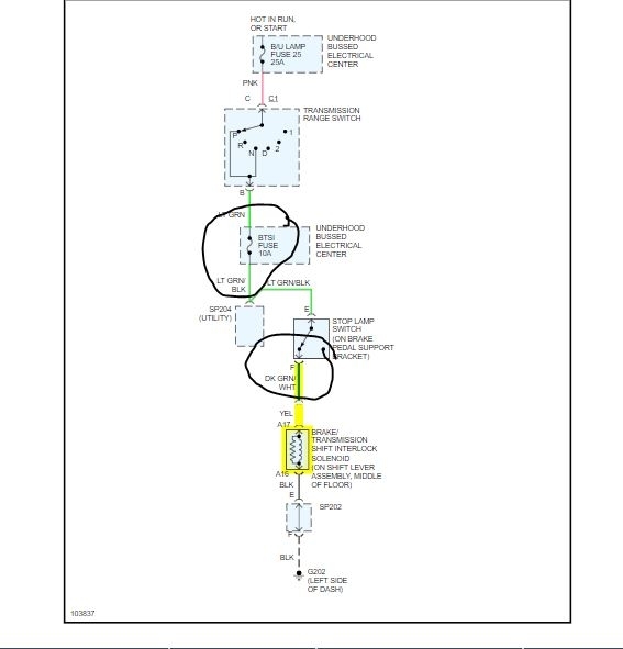 Also, check the wire coming out of the stoplight switch to the interlock solenoid.