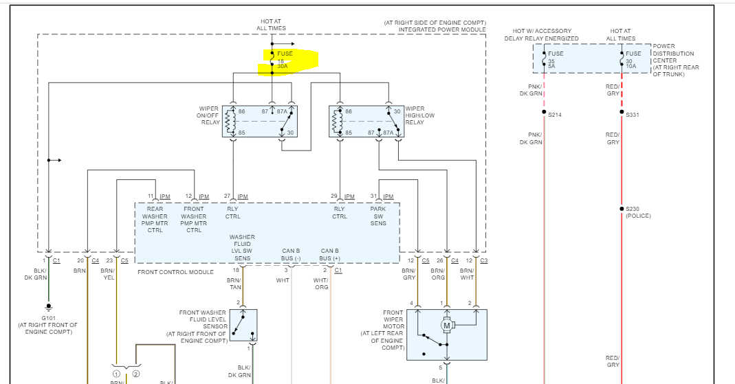 Pic 2 shows the fuse to check and the wiper relay as well. If the fuse is good and has power to and from it, switch the relay with a different one in the box having the same part number.