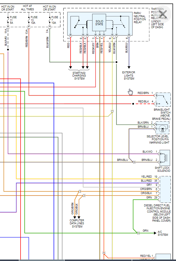 I attached the wiring diagram that you requested. However, it appears there are options on which transmission so hopefully this matches your vehicle.