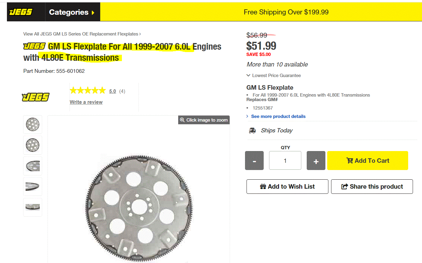 I just am a little stuck right now. As I need to find a flex plate very soon to get this van working. So my question is, is there a factory GM flex plate that will fit my LQ4 and has an 11.063” bolt pattern?