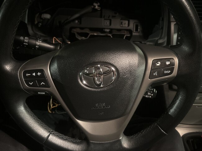 Can I get an image of the steering wheel? The vehicle speed data is communicated throughout the CAN via the ABS control ECU. I would try to tap into one of the WSS to see if you can get it to work, here is the wiring diagram so you can see what I am talking about.
