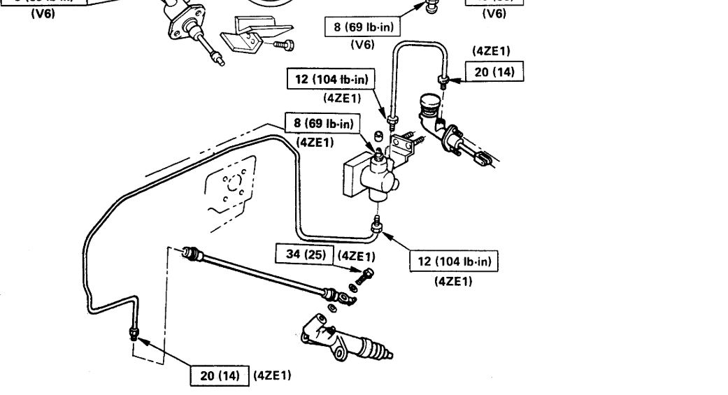 5. Loosen the bleeder to release clutch fluid with air bubbles into the container, then tighten bleeder screw. Do not release clutch pedal until bleeder screw has been tightened.