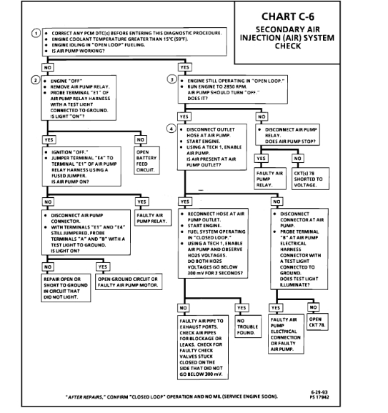 1. The PCM should energize the air pump when engine coolant temperature is greater than -8.5°C (17°F) and fuel system not in "Closed Loop." If any Diagnostic Trouble Codes (DTCs) are present the PCM will not energize the Air Injection Reaction (AIR) pump.