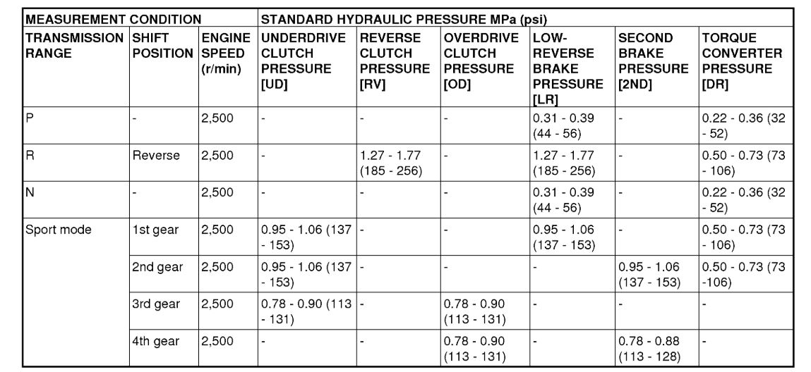 Transmission fluid temperature: 70 - 80°C (158 - 176°F)