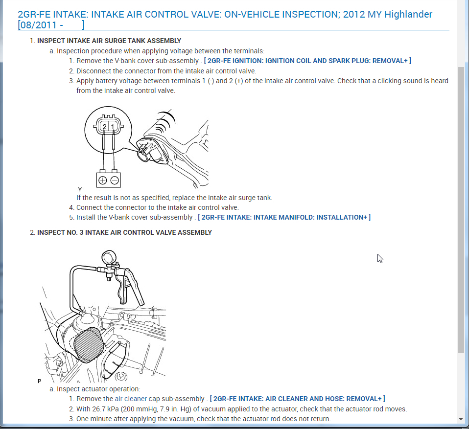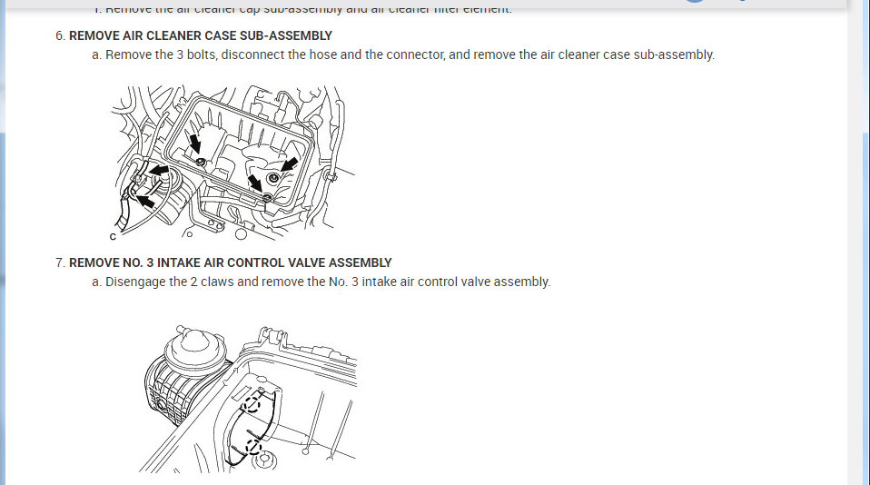 Good afternoon! I have a new set of plugs going in on Wednesday as well as intake manifold gaskets. I replaced the purge valve with a new one and it solved my vacuum leak. In the process I noticed that the housing for the air control valve was broken and as a result, it sits very loosely in the air intake. I've ordered a new one and look to replace it soon. I was hoping you could send me directions on how to change it. Most of it is straightforward but I want to make sure I undo the clip inside properly. I'll send a picture of the part I'm replacing and show you the clip I'm talking about. It is located after the air intake snorkel and before the air filter housing. It is not the MAF sensor. Thanks!
