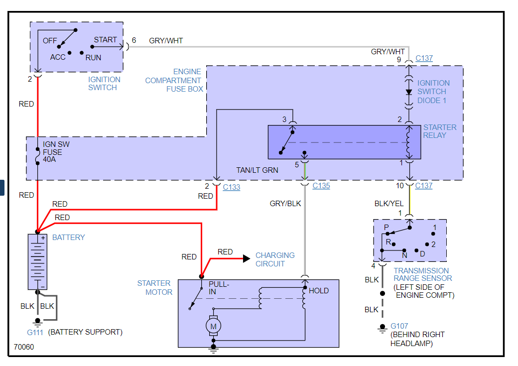 Is the security light flashing when you try to start it? If so the security system is engaged and wont let the car start. There is not a way to bypass the system because it is integrated into the computer of the car. I would check the 40 amp ignition switch fuse under the hood. Here is thes tarter wiring diagrams so you can see how the system works. Check out the images (Below). Please let us know what happens.