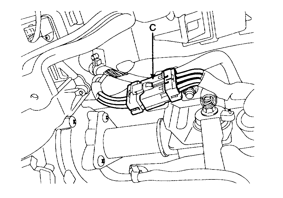 3. Remove the ignition switch (A) after loosening the screw (B) with IG ON and disconnecting the 6P connector (C).