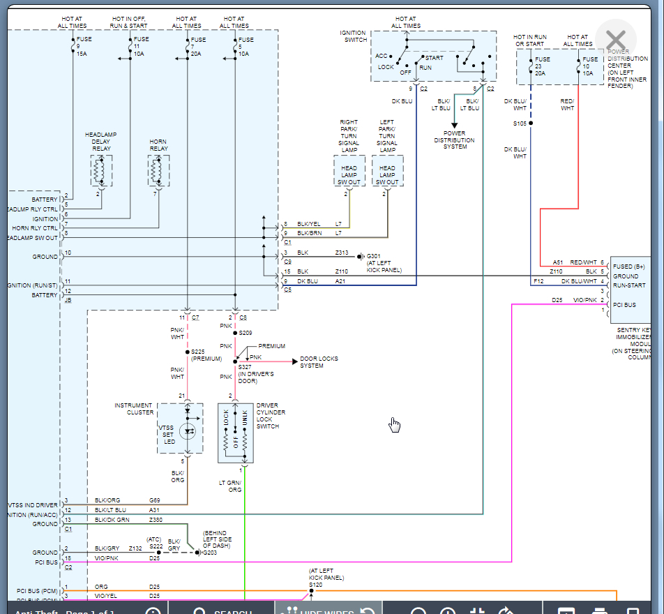Car was broke into and they busted out ignition but left the ignition cylinder on the floor. Replaced the whole steering column but the antitheft wire needs to be connected somewhere. I cannot find out where it goes. Without it connected the car will start but only momentarily then shuts off. I can use the remote start to get the car started then deactivate it by pressing the brake, then I can start the car with the key and it will drive. I need a diagram of where the wire goes to the antitheft device that is wrapped around the ignition cylinder.