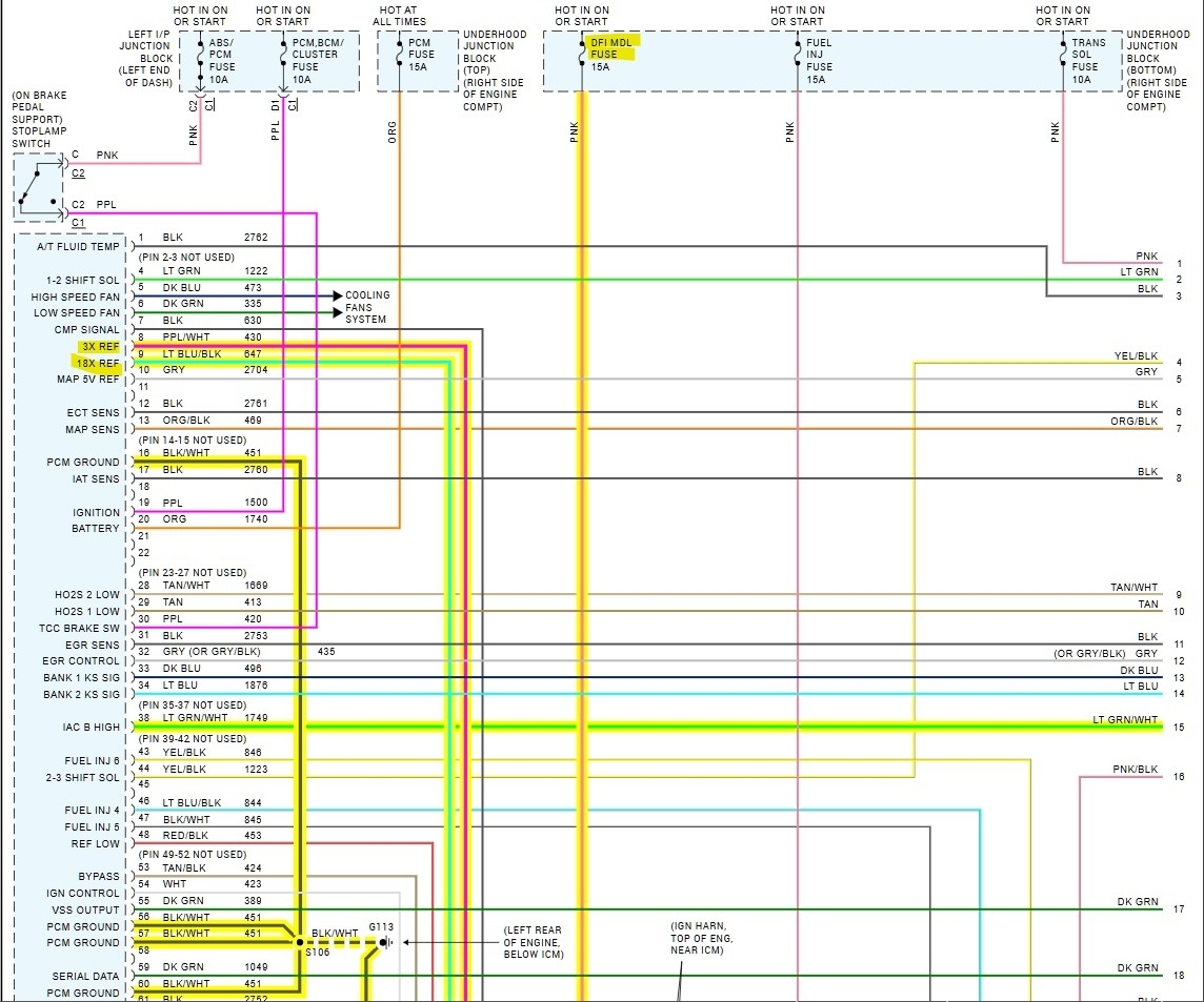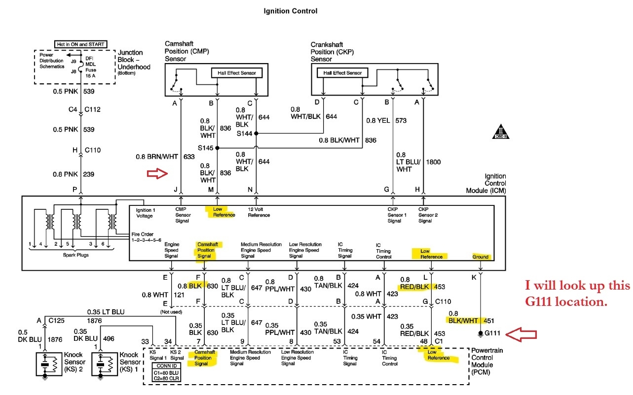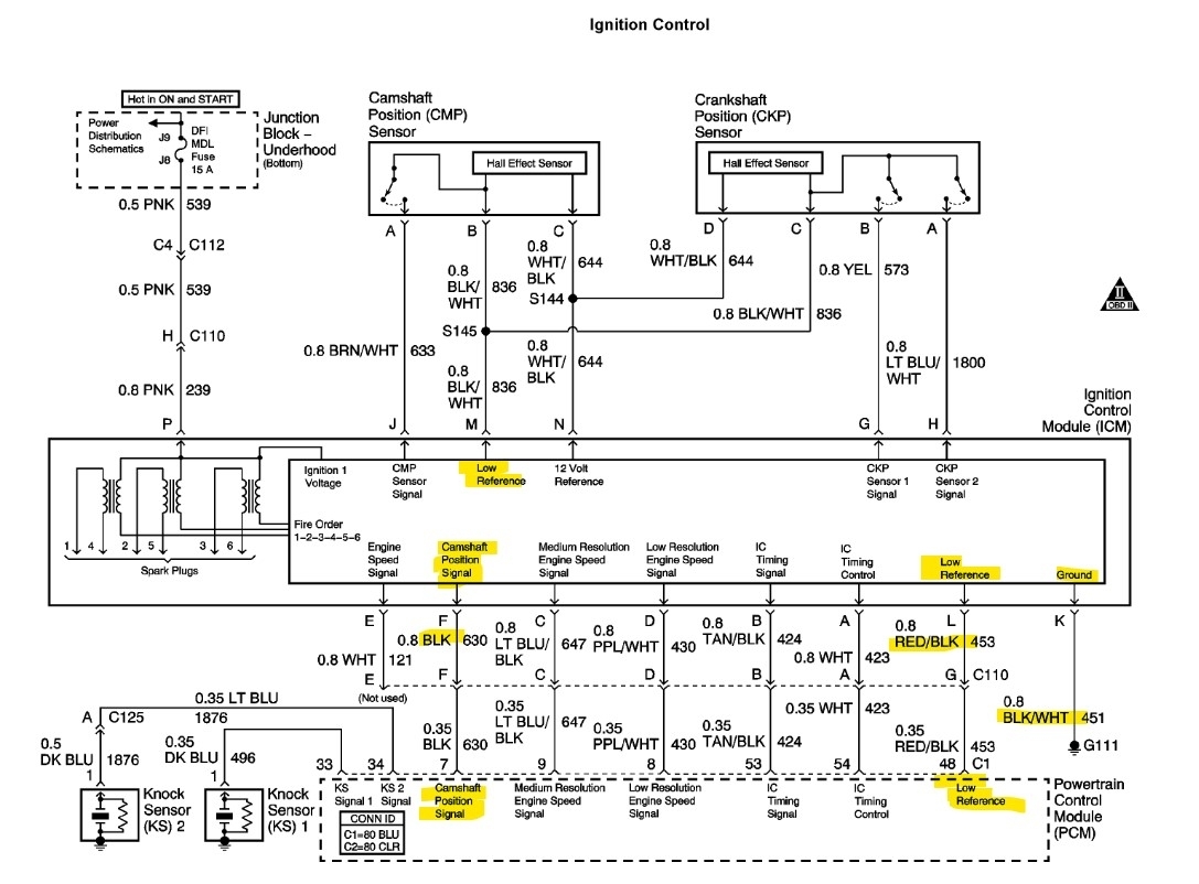 I put my multimeter on the icm harness terminal p pink power and terminal k black/white ground wire which goes to the block and got more than 12 volts. I loaded the circuit with a test light and got over 12 volts. I was told the pink wire feeds the coils.
