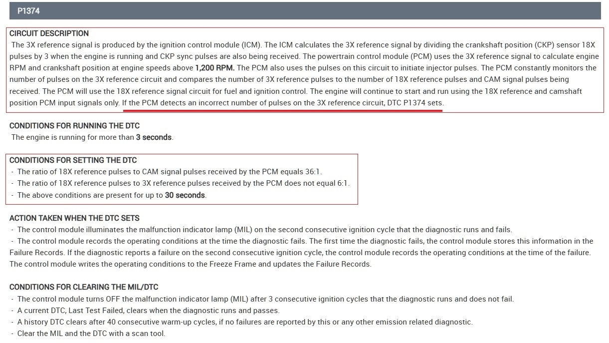 My car was bucking and jerking in park and blowing a little black smoke. Trouble code P/1374 set. crank sensor reference circuit. 2 days later I had no spark on any coil.