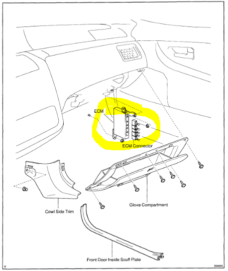 Pic 2 defines the code and pic 3 shows the location of the ECM. It is behind the kick panel on the passenger side of the interior.