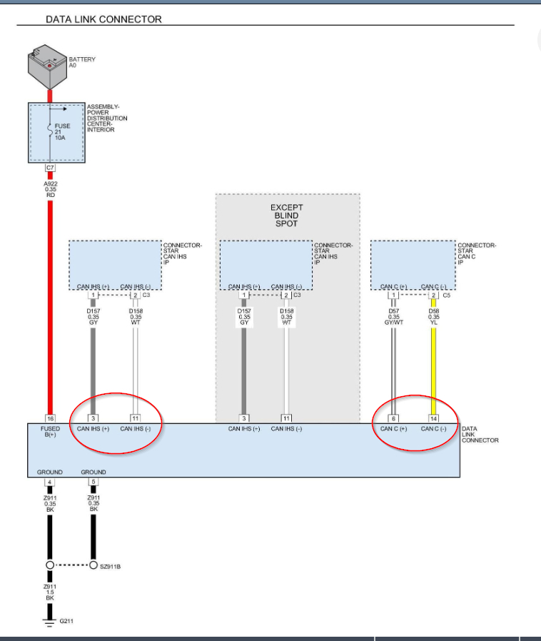 You want to go to the data link connector (where you plug the scan tool in to pull codes) and put your red lead of the multi-meter in each of the pins circled one at a time. The black lead needs to be on a good ground for each one.