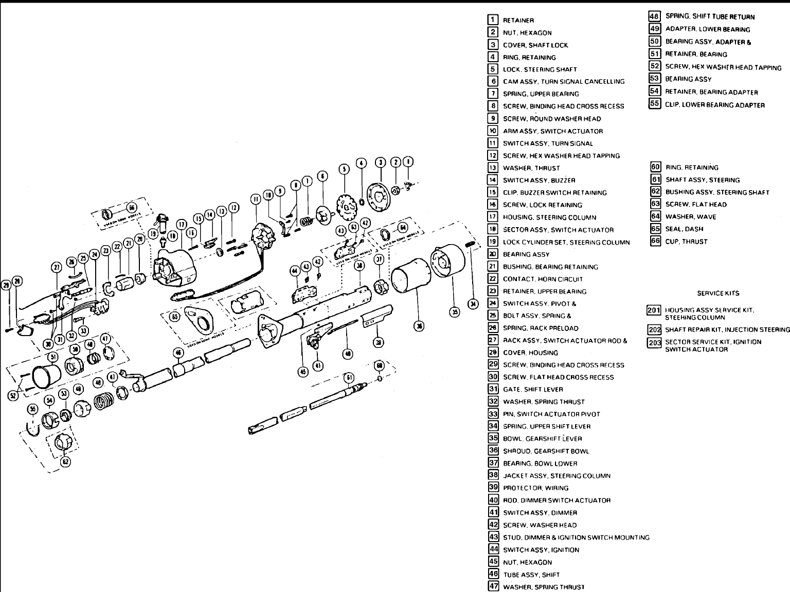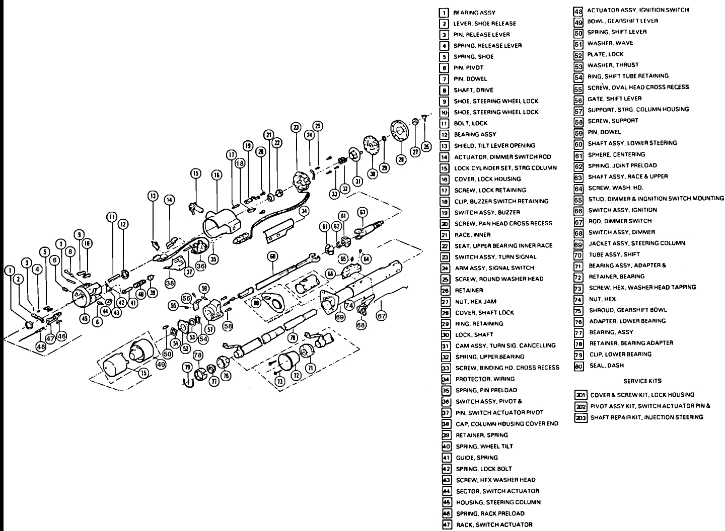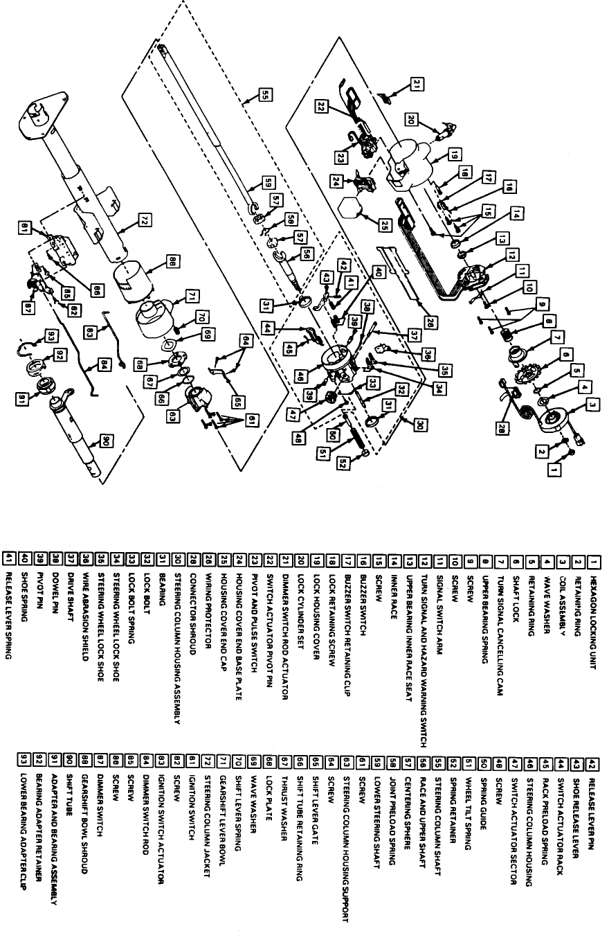 The rod connects to the actuator rack inside the column at the key cylinder at the top and runs down the column to the ignition switch. Depending on which column you have it is a bit different. If you have a tilt column it's a bit different than the fixed column and if you have an air bag it is also a bit different.