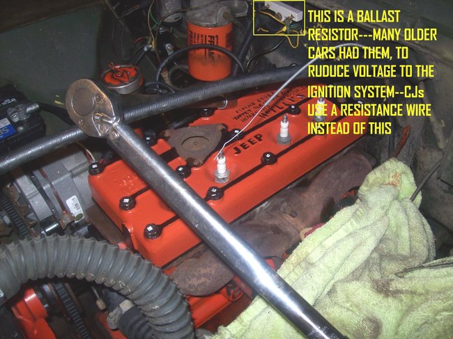 Should you ever have the ballast resistor fry/ go out. Just to get you back in, you can jump across it's terminals with a wire/ paper clip/ piece of barbed wire/ etc. Replace it soon as you can!