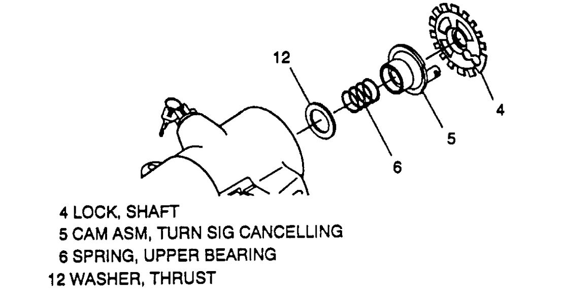 3. Shaft lock retaining ring (3) using J 23653-C to push down steering shaft lock (4). Dispose of ring (3).