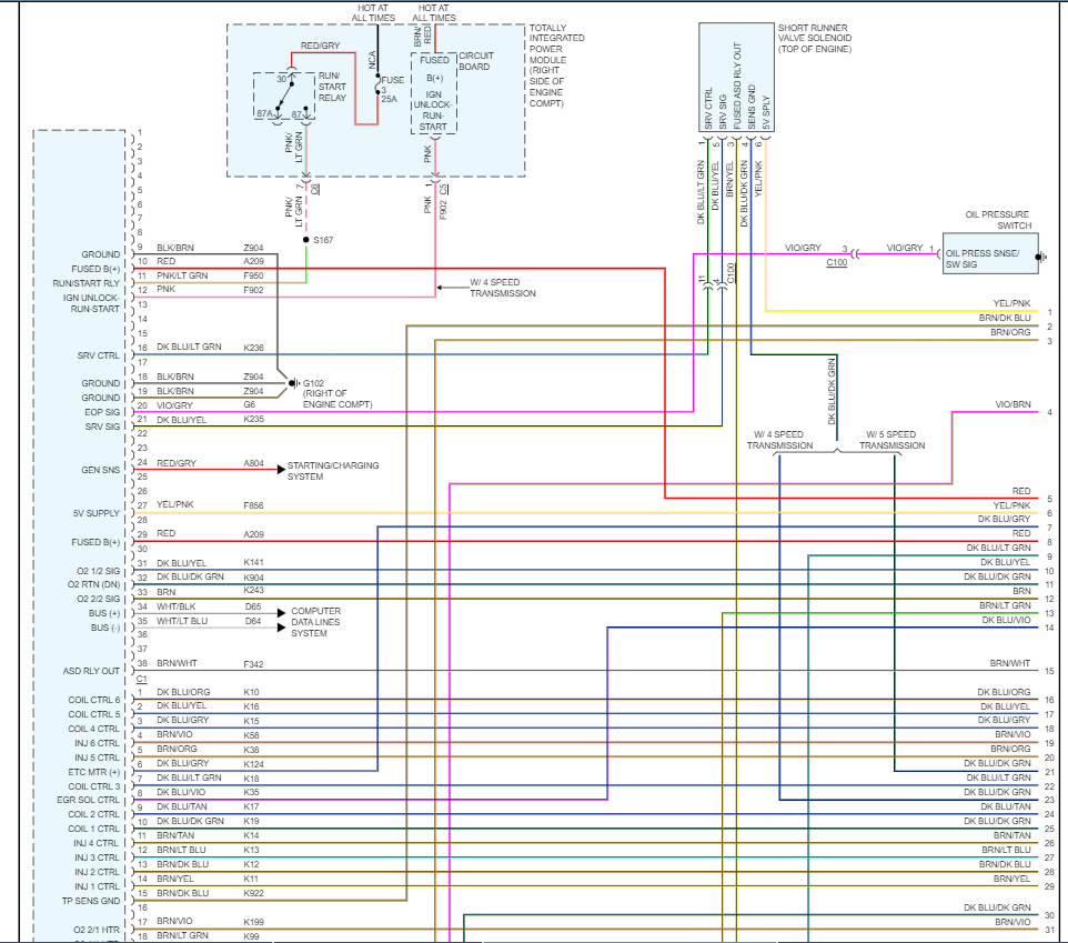 The car started shifting a little rough and threw some transmission solenoid codes, i decided to replace the transmission because I don't mess with any internals in the transmission. So, one day I drove in my garage and replaced the transmission with a used transmission I bought from a friend. After doing the transmission service I tried to start the engine and it would only crank. So, I checked for codes and nothing, I checked for basic things at first, I made sure I could hear the fuel pump turn on with ignition on and that was good, i checked for spark at the ignition coil #2 with a spark tester and while cranking i did not see any spark. The "new transmission housing" I put came with the Crankshaft position sensor so at first I thought it was that the CKP was bad so I replaced it with the original CKP sensor I previously had on the old transmission housing and made no difference, and just to make sure it was good i ended buying a new CKP sensor from Auto Store and nothing. So, i pulled out a few diagrams I found of it, I did check CKP connector gets 5V, ground and also checked with a multimeter and while cranking that it was sending out .200 signal. I checked for continuity on that signal wire all the way to PCM connector and it was good. I also checked Camshaft Position sensor for the same stuff, 5V, ground and signal out. Good. I was thinking PCM had gotten unprogrammed because we had disconnected the battery for a few hours straight so i ordered an already flashed to your VIN PCM ready to plug and play. While that arrived i was doubting the PCM had an issue because i could hook up my scanner to it and do active test on it, but while I waited on that to arrive I replaced the Short Runner Valve from Junkyard car, replaced a CPS with junkyard donor, I started checking coil connectors, yellow wire does show power when key on, I checked all fuses and relays, I checked for Auto Shut down relay and it seems to work fine, i even though the "New" transmission was the issue so I took it down and put the old one back up just to see if it had anything to do with the transmission but still won't start. Just cranks, doesn't sound like timing chain broke either, sounds like good compression, after replacing the transmission again with the new trans thinking my problem was the PCM it arrived today, we plugged it up, I made sure to check for codes and nothing, cranked it and still doing the same thing, I don't know what else to check hopefully you guys can help me out!