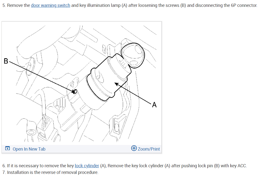 Sorry Joe. Maybe the diagram you reference is some form of generic ignition. Mine doesn't look the same and does not have any holes or access to any pins in or near the noted location. I don't know if you will be able to make anything of my picture, but it is taken from approximately the 7 o'clock position from under my steering wheel.