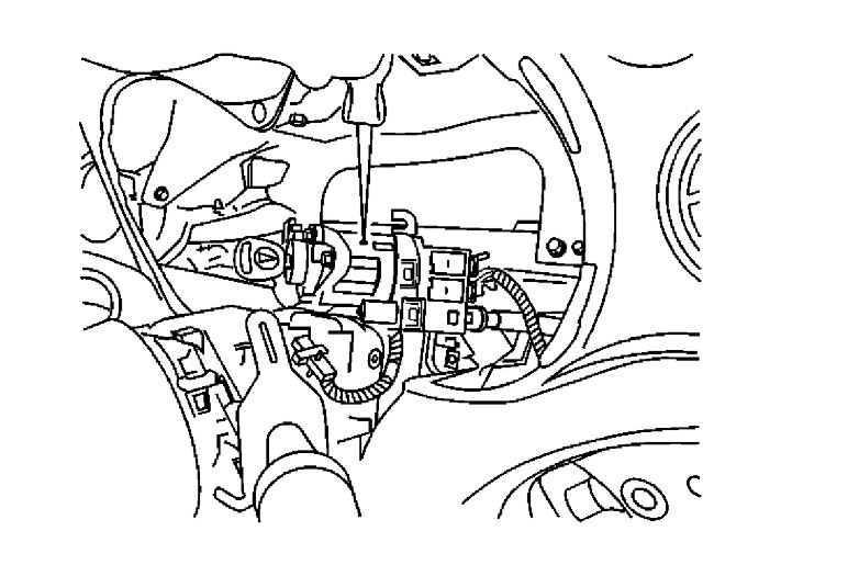 11. Remove the ignition switch through the I/P cluster opening.