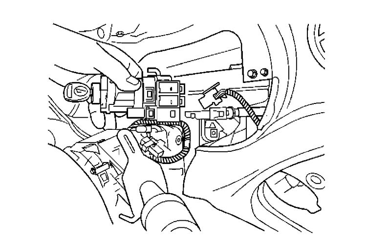 10. Disconnect the electrical connectors from the ignition switch.