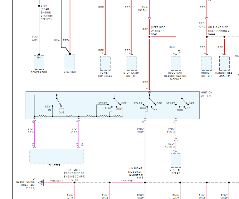 is there another version of this drawing? my ignition switch has five terminals: (SR-P-R/S-S-B), but the ignition switch in the partial drawing above has eleven terminals. mine is an 07 PT Cruiser with an automatic transmission and the ignition switch is peculiar to 2007/2008, different from preceding and years that followed, or am i missing something?