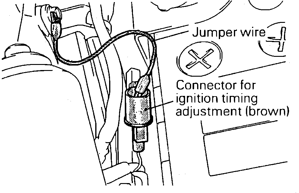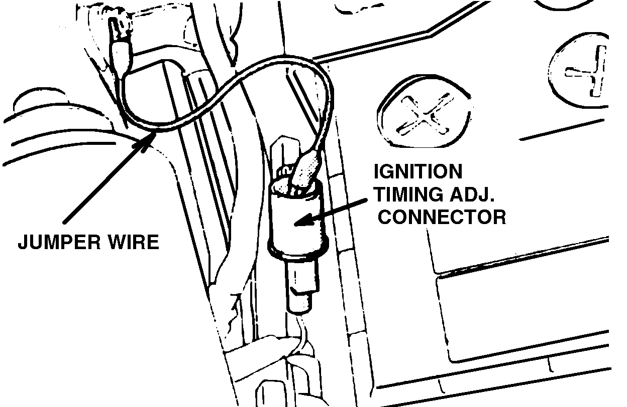 3. With the engine OFF, ground the ignition timing adjustment terminal with a jumper lead.