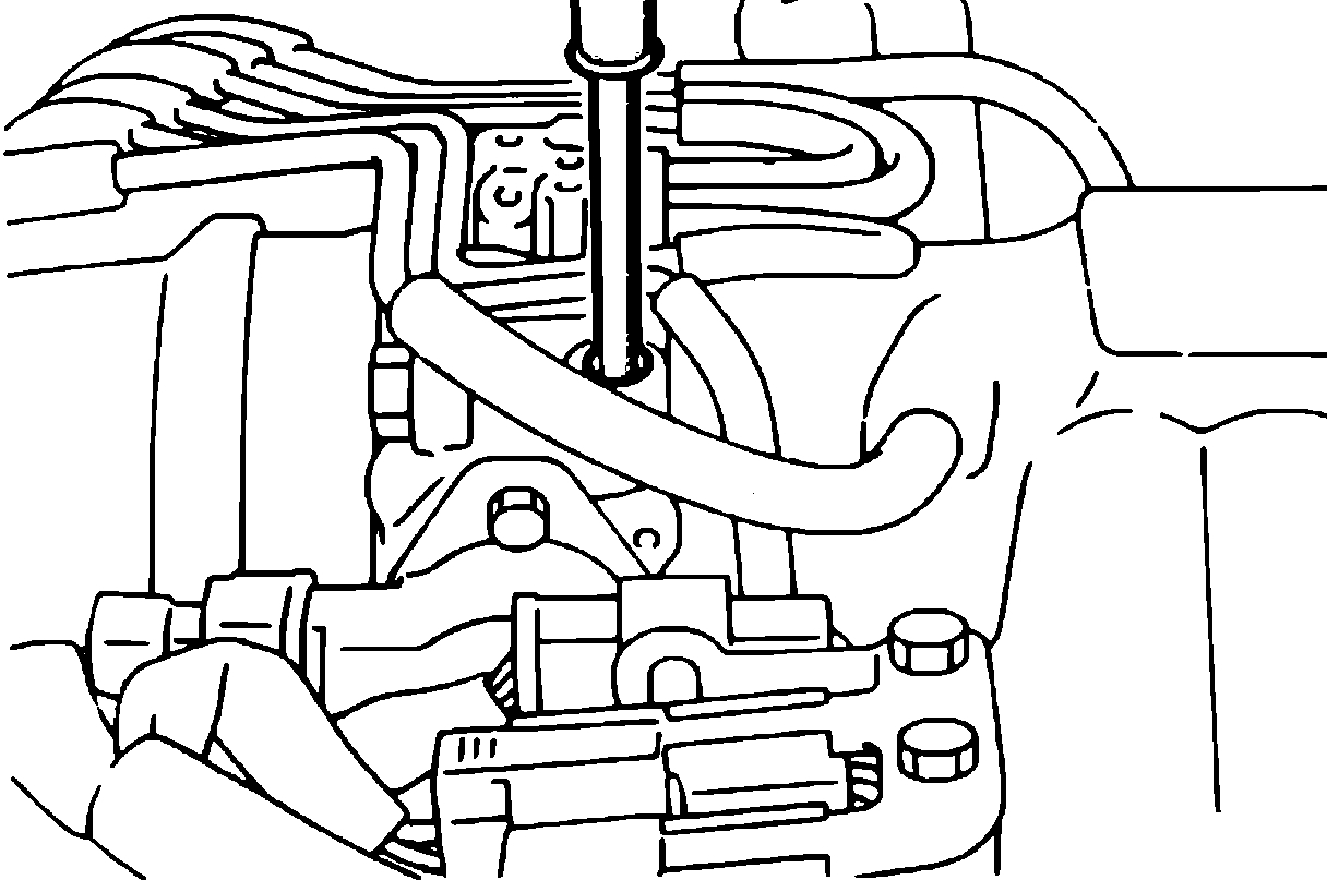 10. At the completion of testing, remove the test equipment and reconnect the high pressure fuel hose to the fuel rail.